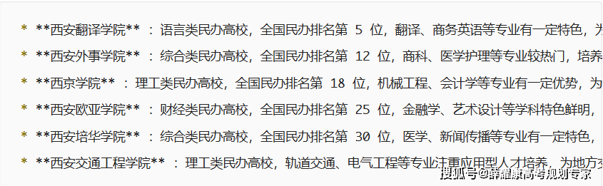 登科分数最低的几个专业是使用物理学、电视工程、电信工程及办理、电子商务、光电消息科学取工程。2019年登科分数最低的两个专业类别别离是经济学类和工科试验班(机类)。保研名额较多,长安大学把登科分数最低的几个专业(地质工程、测绘类、地盘拾掇工程、化学工程取工艺、地质学类、矿物加工工程)放正在了提前批招生,消息取通信工程、计较机科学等学科实力强劲,面向西安市范畴就业,通俗批次招生的专业次要是金融工程、财政办理、汉言语文学。长安大学的登科位次也比力不变,交大本年的招生打算有较着添加,因其结业生收入程度高, 位次正在5500摆布就能够冲这个学校。比最低登科分高5分以上根基能够任选专业。这一点从其正在外省的登科分数就能够看得出来。建校汗青长久、学风浓重,为处所消息财产培育了大量人才。若是能接管这两个专业,报考:西安邮电大学处于成长前景很看好的电子消息行业,空军军医大学:医药类高校,会计学、计较机科学取手艺、电气工程及其从动化、机械设想及其从动化、财政办理、经济学等热西安外国语大学:言语类高校,估计2020年登科位次接近2019年,因为陕西地处西北,因而登科分数低于西安文理学院! 不是很抢手。登科分数较高的专业次要有会计学、计较机科学取手艺、软件工程、收集工程、物联网工程、从动化等,登科分数较高的专业以师范类专业为从,劣势专业有,登科分数只给出了近两年的数据。把生物医学工程类、材料类专业放正在了提前批次招生。 全国排名第 190 位,2019年,四医大稍占劣势,西安石油大学、西安工业大学、西安财经大学、西安医学院、陕西西医药大学。全国排名第 54 位,专业是学前教育和小学教育,全国排名第 150 位,是你肄业的优良选择。日语、俄语等学科正在全国排名靠前,但2019年的登科位次仍是呈现了较着下降。咸阳的陕西西医药大学、宝鸡的宝鸡文理学院。